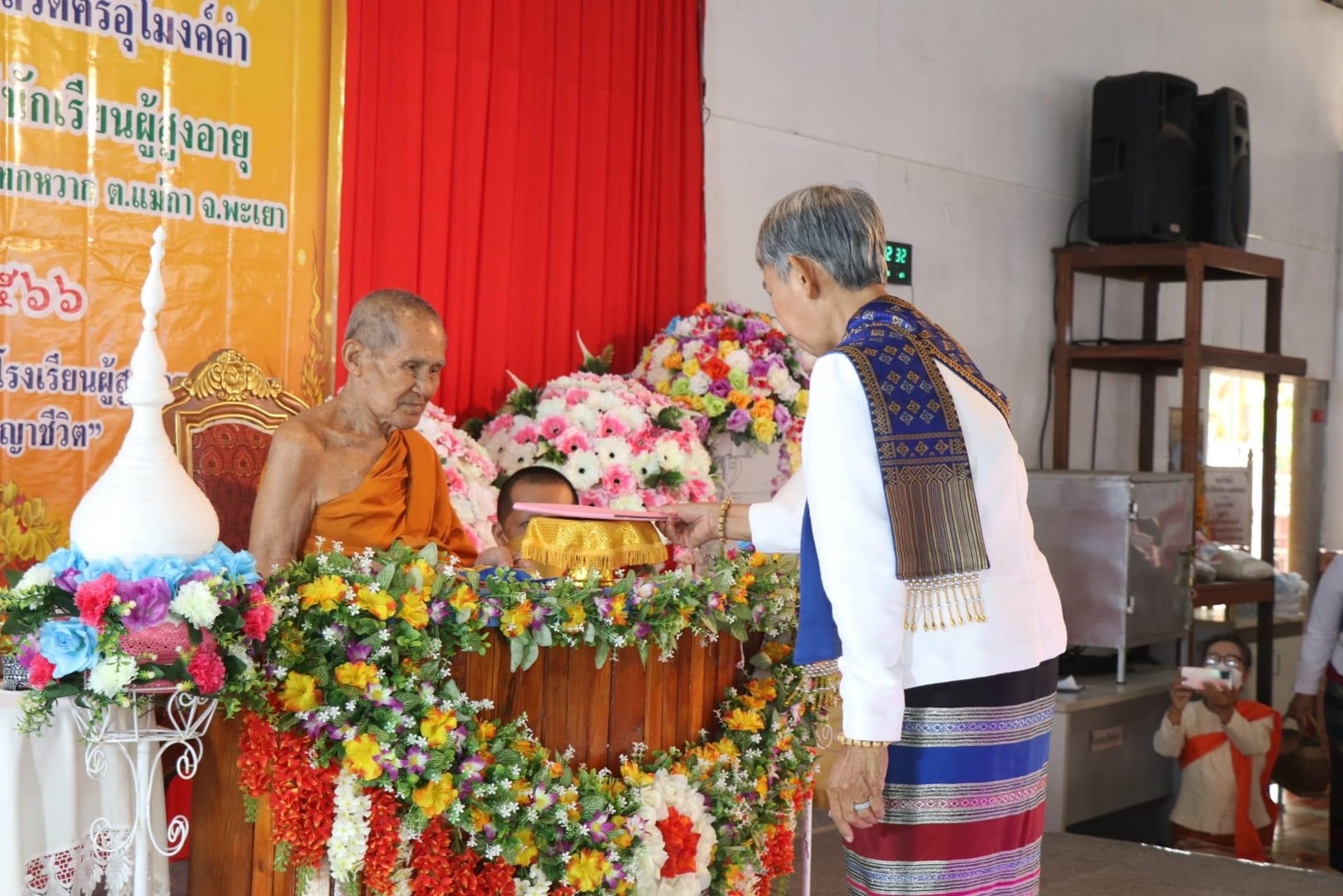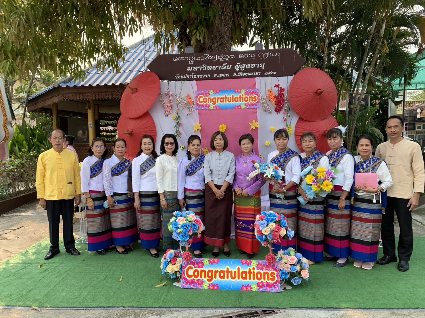 วันเสาร์ที่ ๔ กุมภาพันธ์ พ.ศ. ๒๕๖๖ สำนักวิชาการ ได้จัดซุ้มรับปริญญา ในกิจกรรม “พิธีมอบปริญญาชีวิต” โรงเรียนผู้สูงอายุวิถีพุทธ นำชีวิตสุข วัดแม่กาโทกหวาก ตำบลแม่กา อำเภอเมืองพะเยา จังหวัดพะเยา พระเดชพระคุณพระเทพญาณเวที ที่ปรึกษาเจ้าคณะภาค ๖ มาเป็นประธานในพิธีมอบปริญญาชีวิตให้กับนักเรียนผู้สูงอายุ โดย พระครูอาชวพิมล เจ้าอาวาสวัดแม่กาโทกหวาก ผู้อำนวยการโรงเรียนผู้สูงอายุวิถีพุทธ นำชีวิตมีสุข วัดแม่กาโทกหวาก ได้กล่าวถวายรายงาน มีคณะครูจิตอาสา เครือข่ายนักเรียนผู้สูงอายุ และคณาจารย์ บุคลากรสำนักงานวิชาการ วิทยาเขตพะเยา มีกิจกรรมการจัดนิทรรศการผลงานนักเรียน/ภาพกิจกรรมนักเรียนผู้สูงอายุและการจัดการแสดงของนักเรียนผู้สูงอายุ