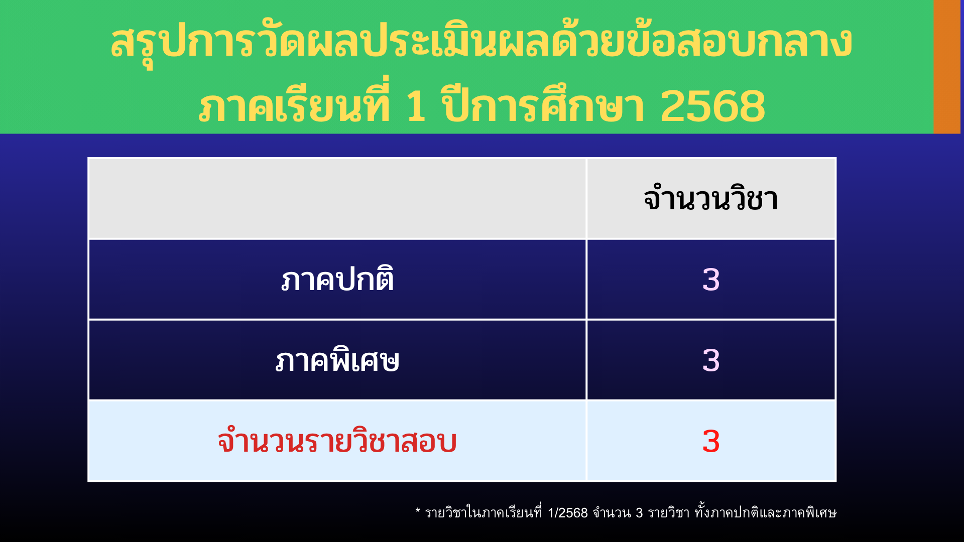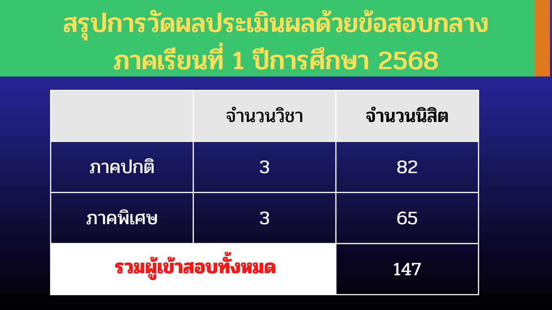 | สถิติจำนวนผู้เข้าสอบวัดผลการศึกษารายวิชาข้อสอบกลาง | |