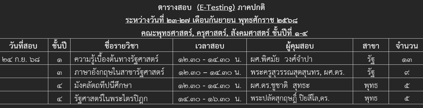 ตารางสอบนิสิตภาคปกติ (จันทร์-ศุกร์)