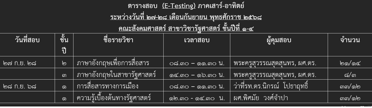 ตารางสอบนิสิตภาคพิเศษ (เสาร์-อาทิตย์)