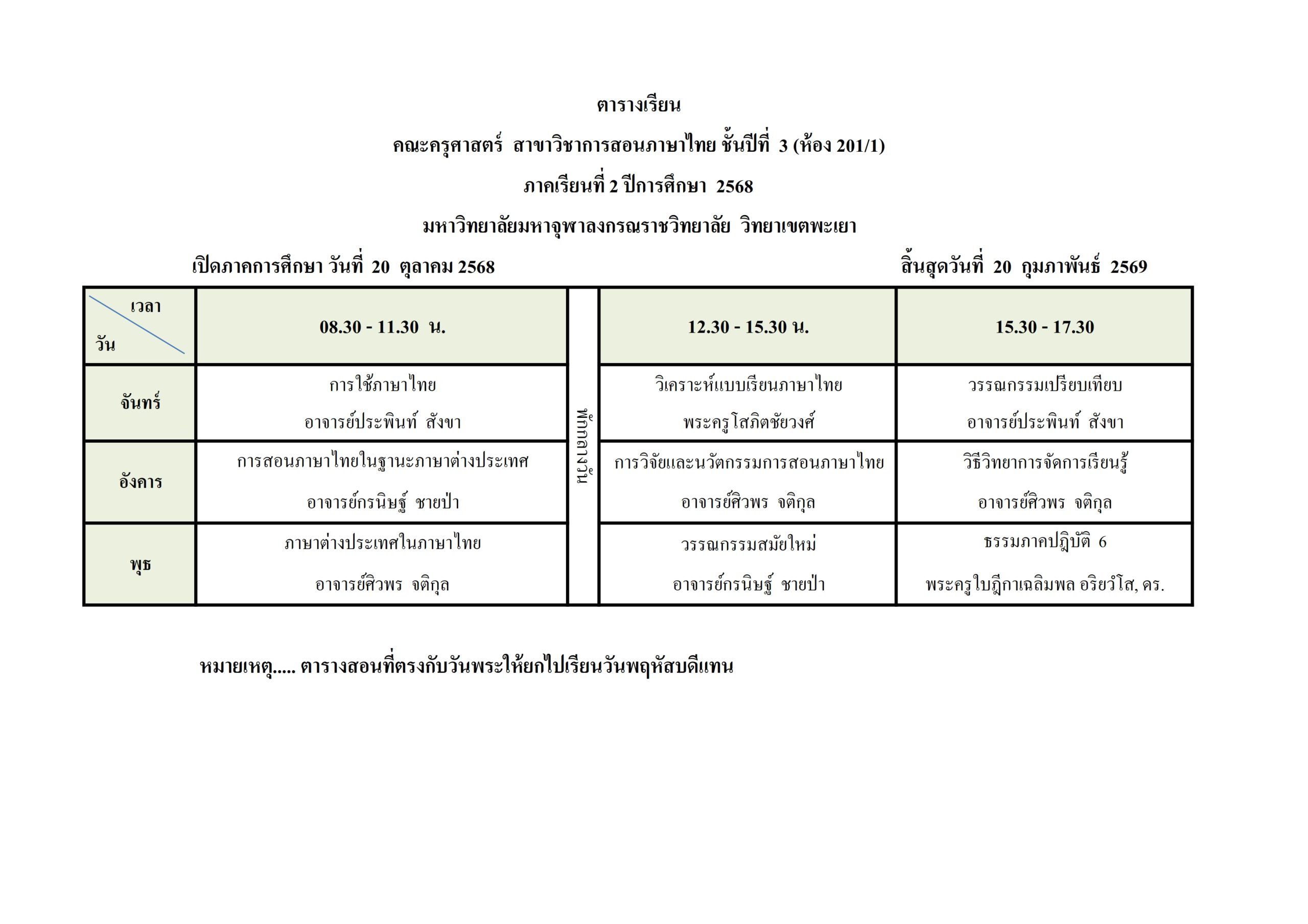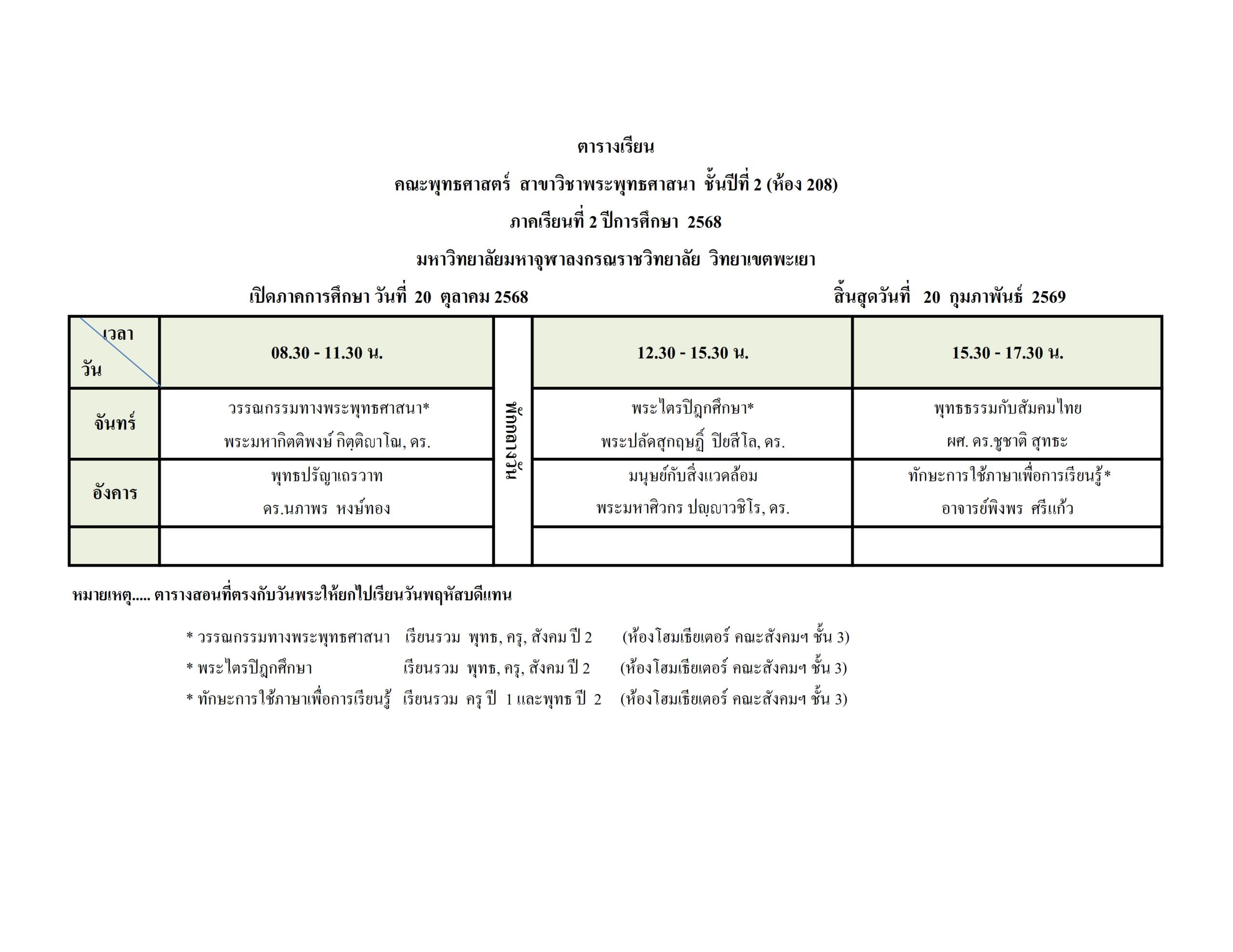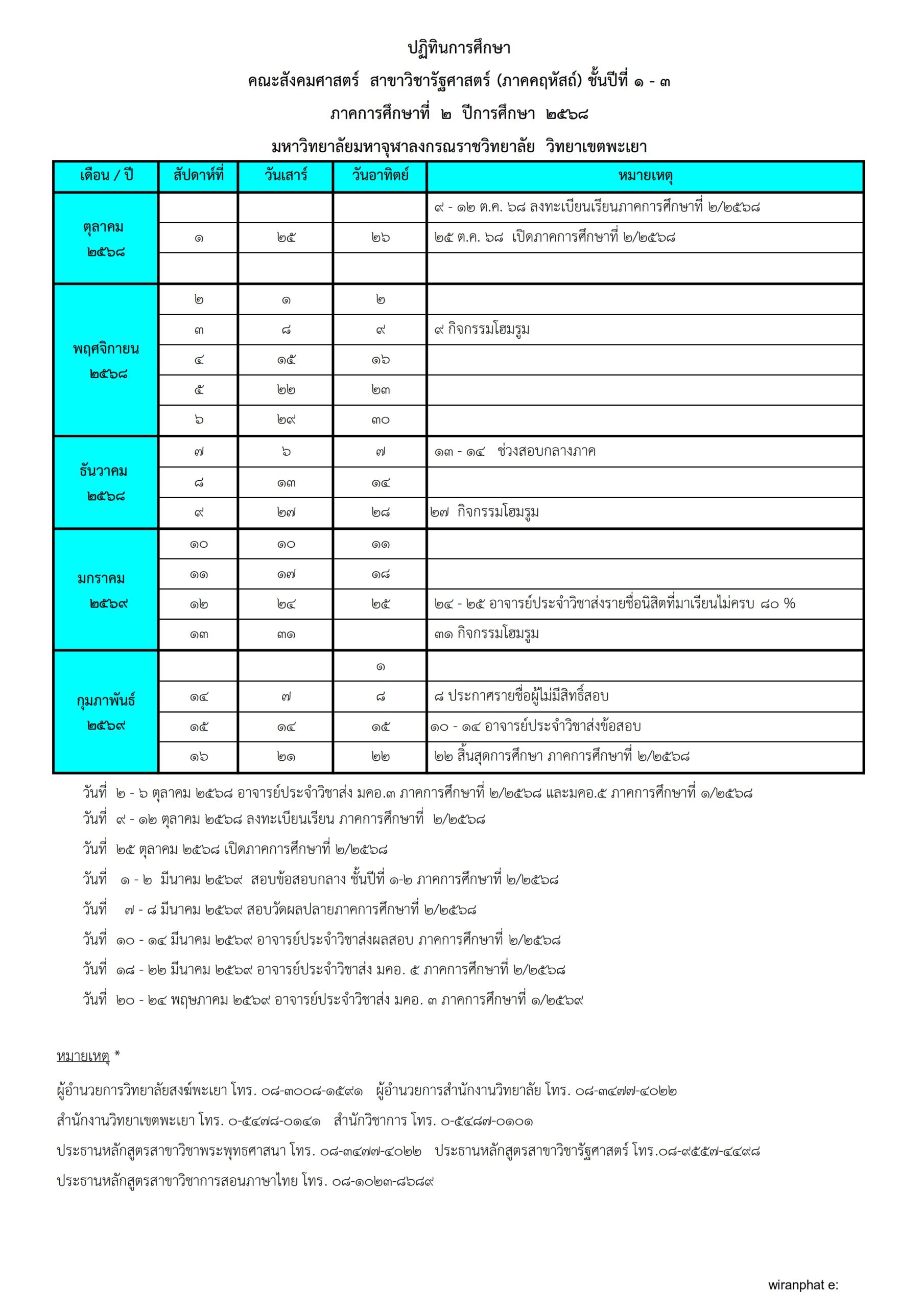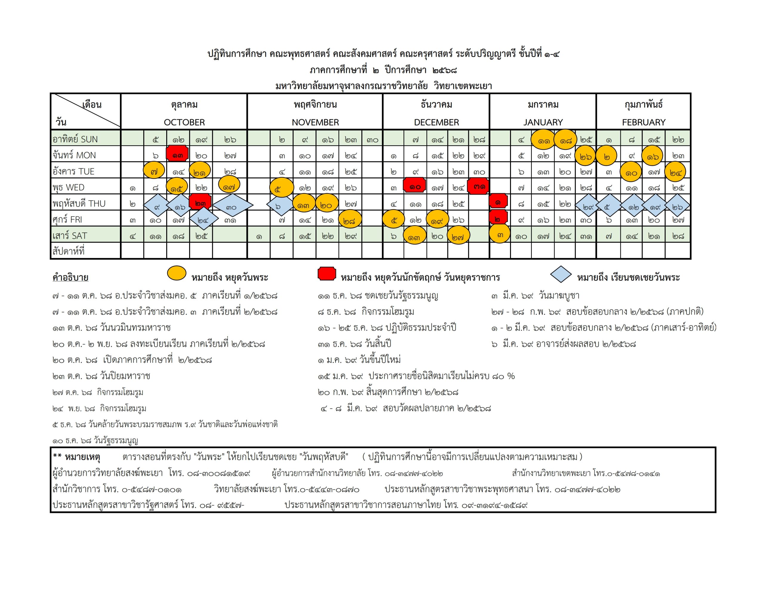 ปฏิทิน/ตารางเรียน ภาคเรียนที่ 2