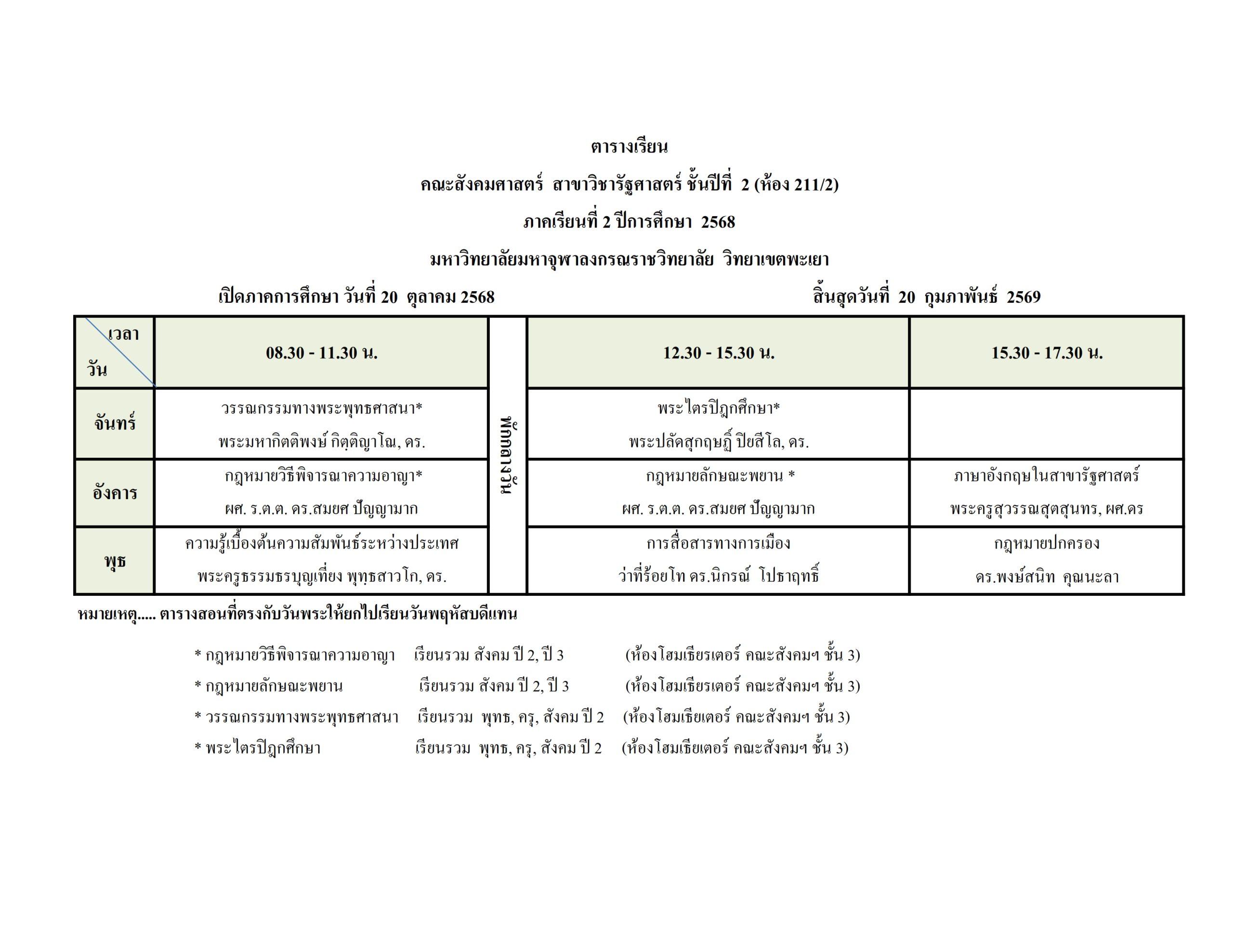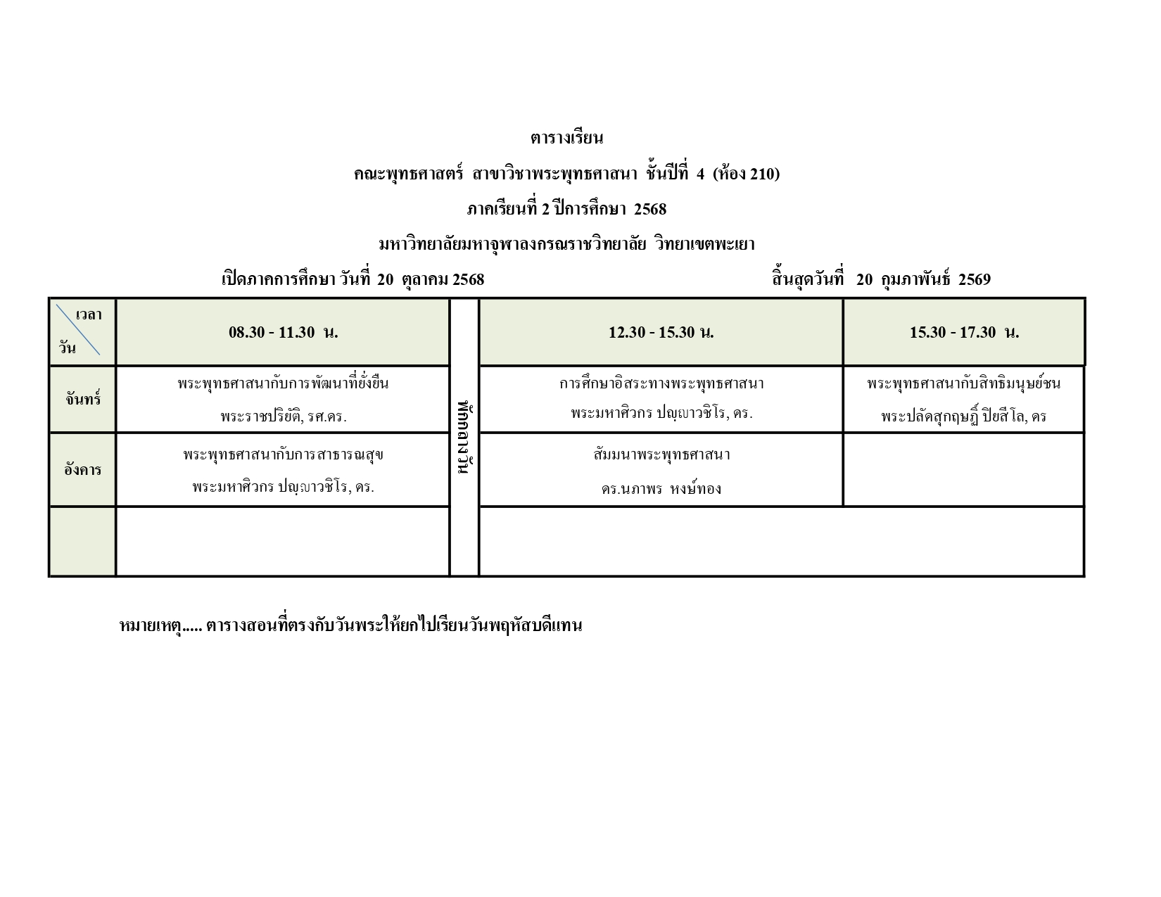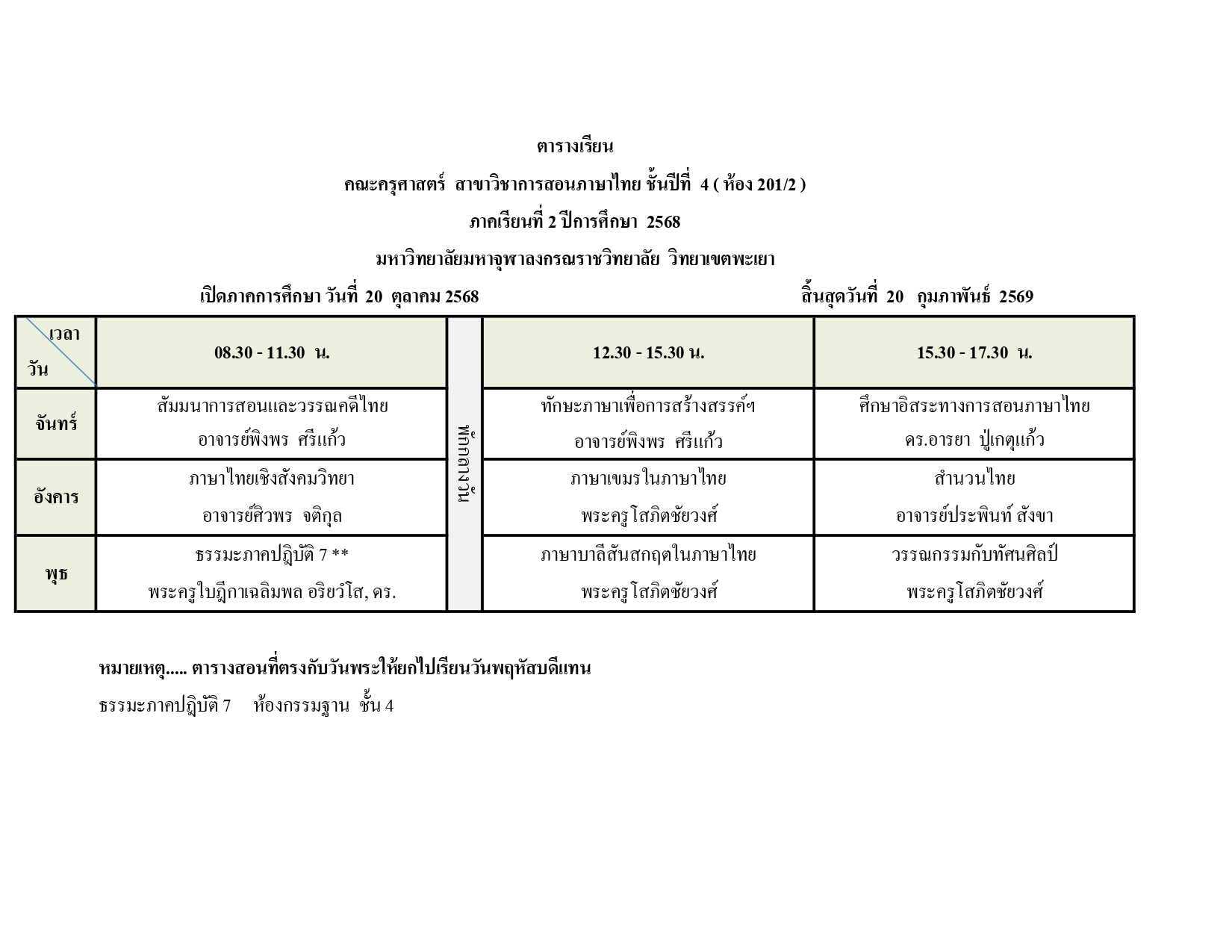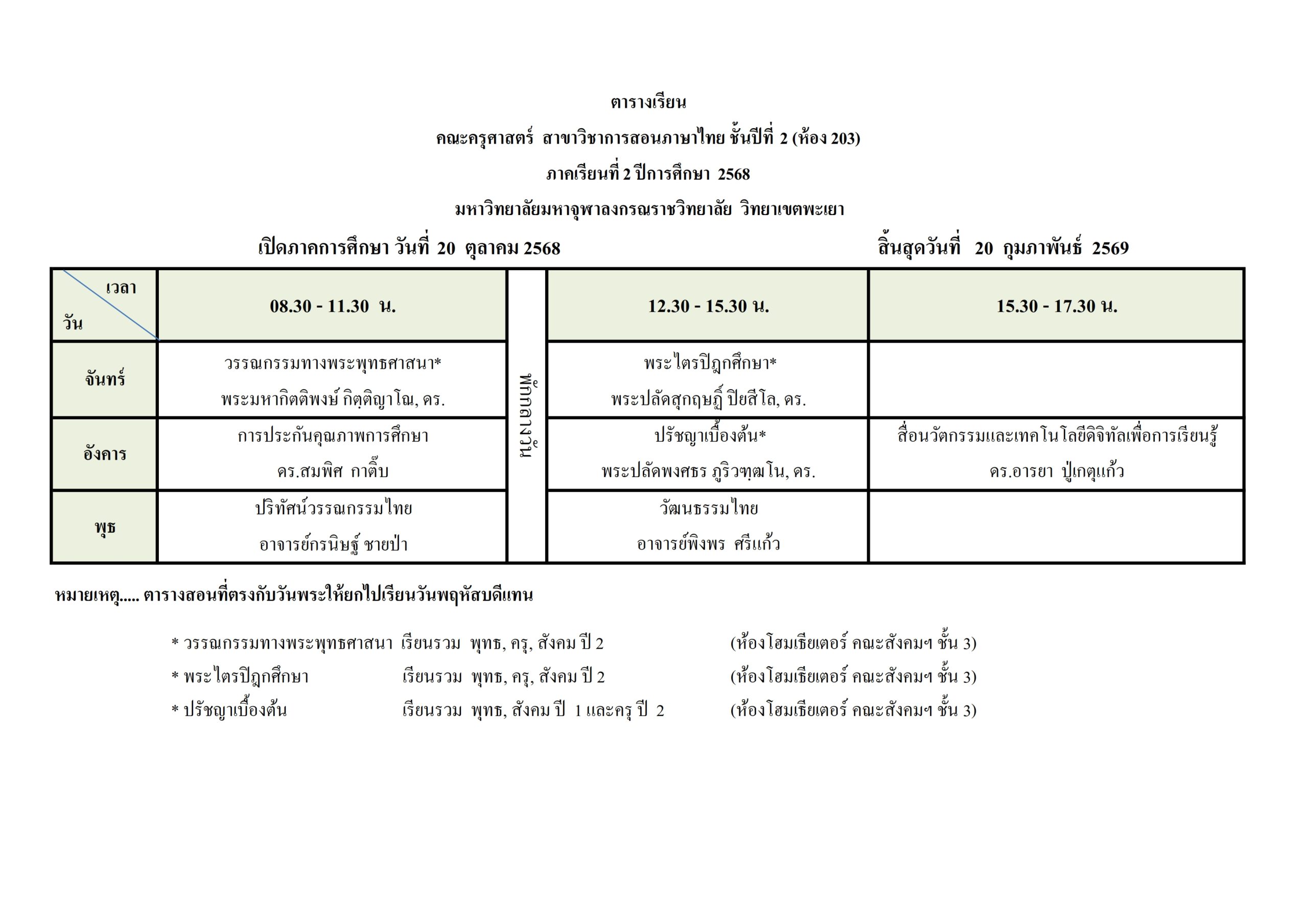 ปฏิทิน/ตารางเรียน ภาคเรียนที่ 2