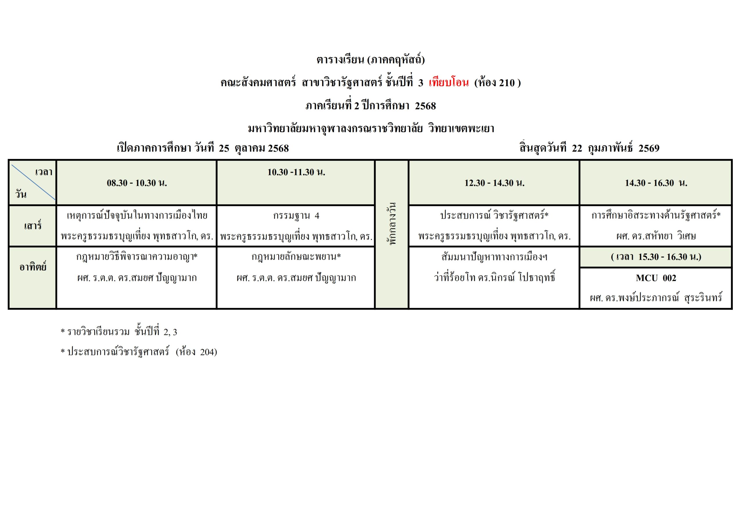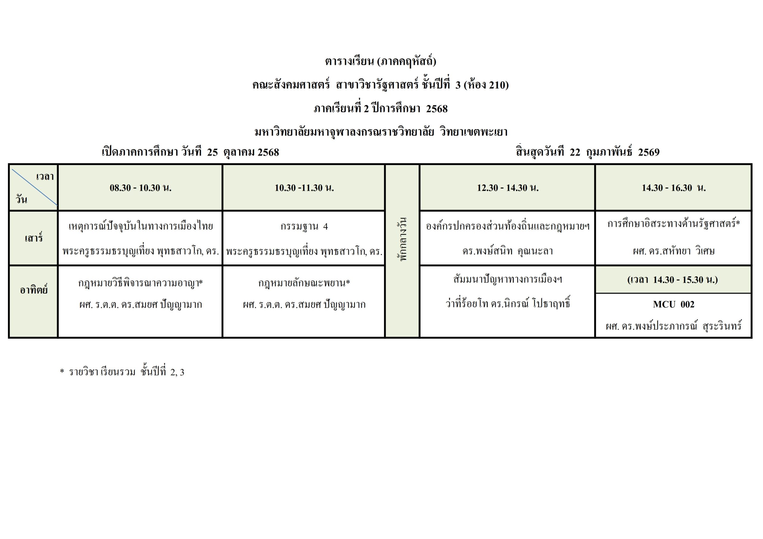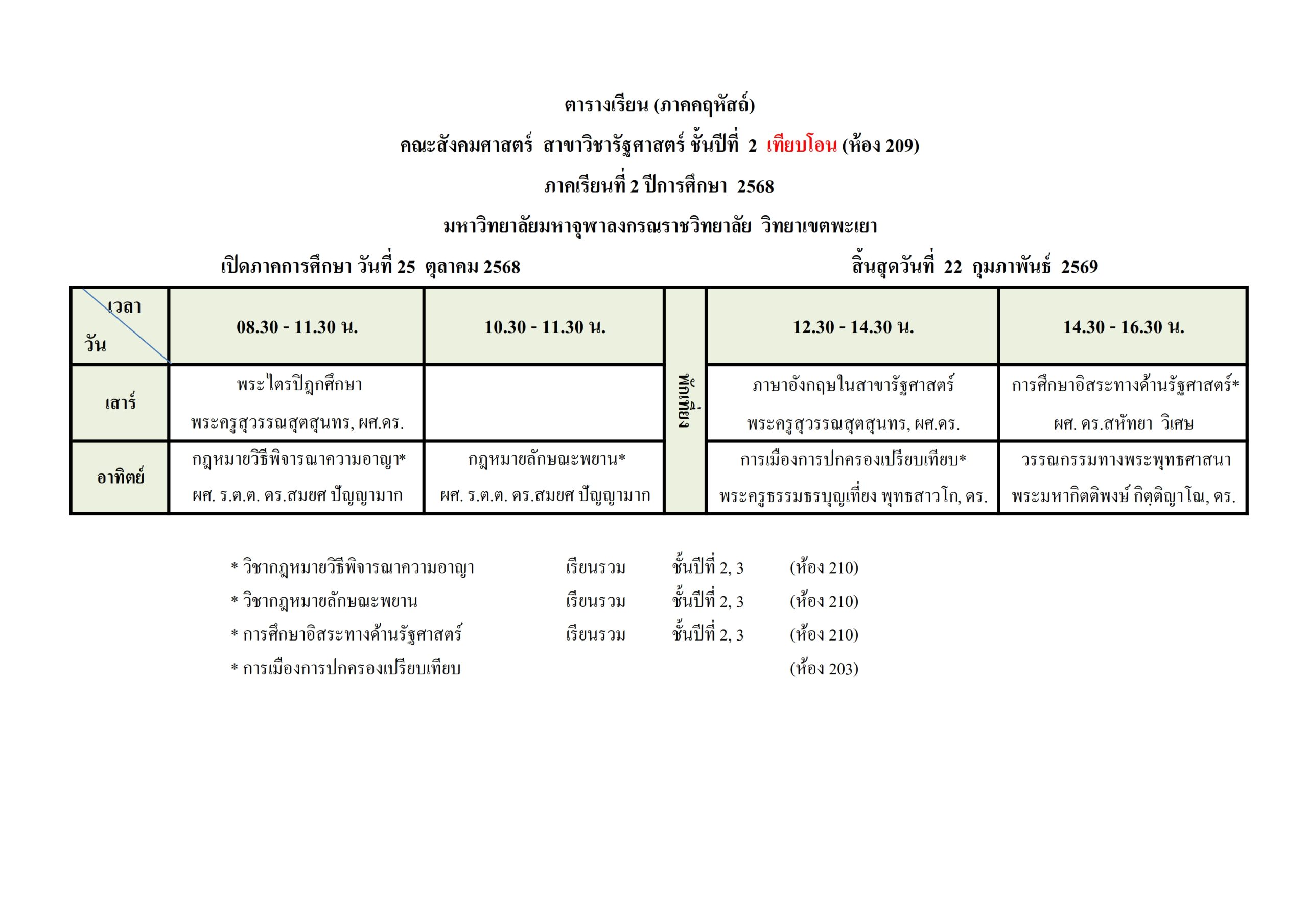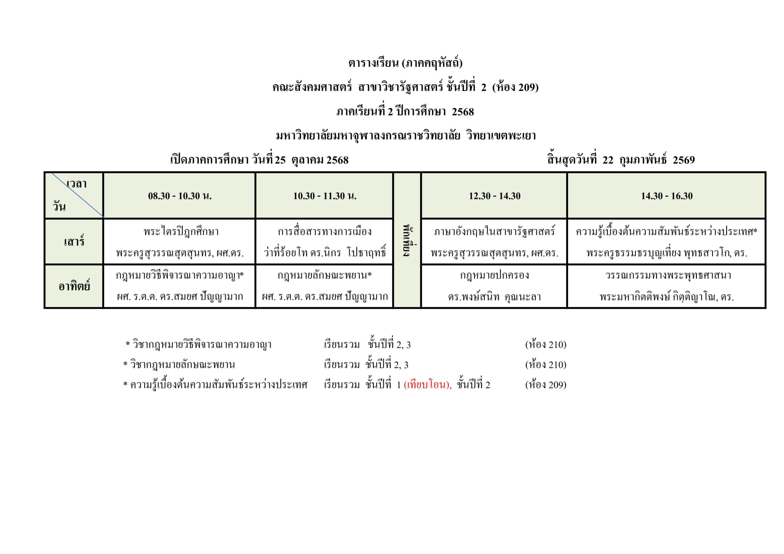 ปฏิทิน/ตารางเรียน ภาคเรียนที่ 2