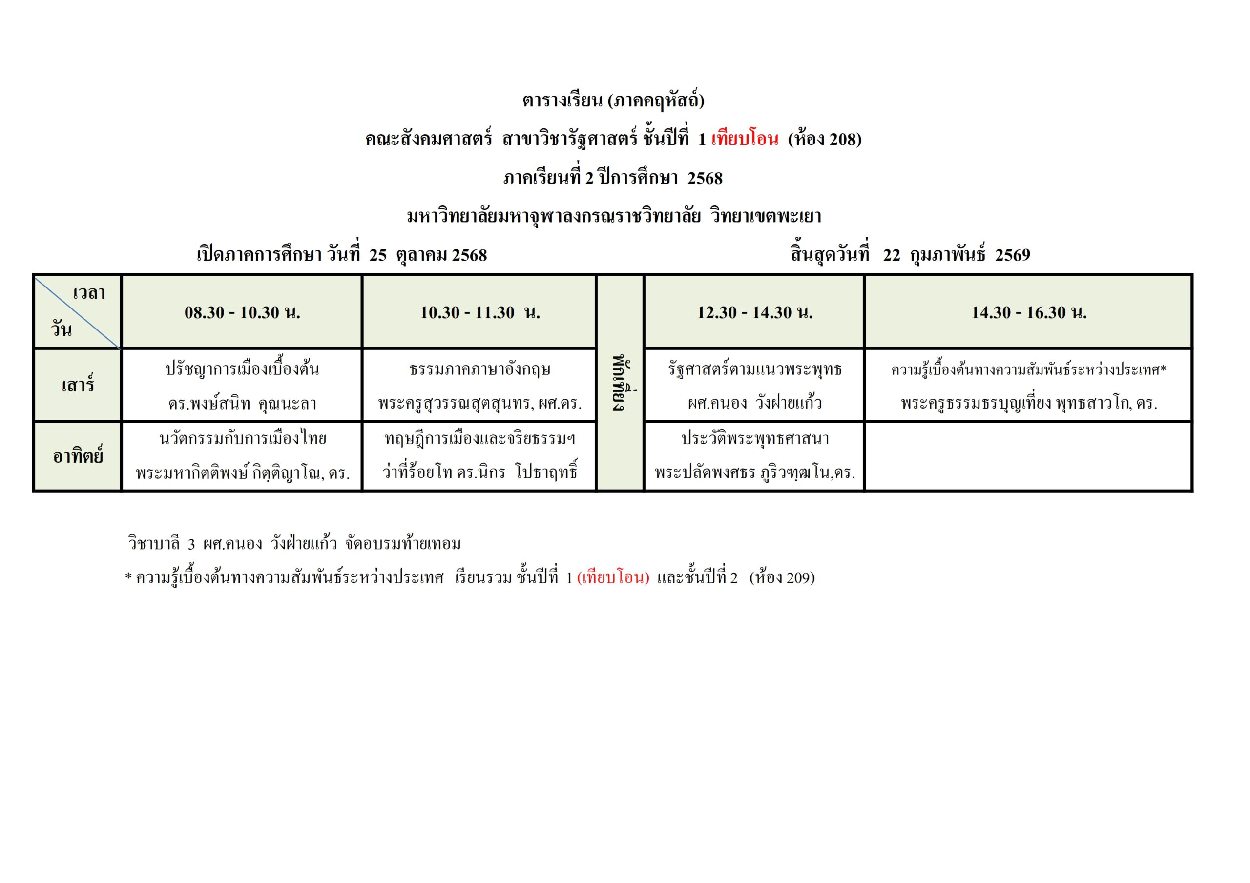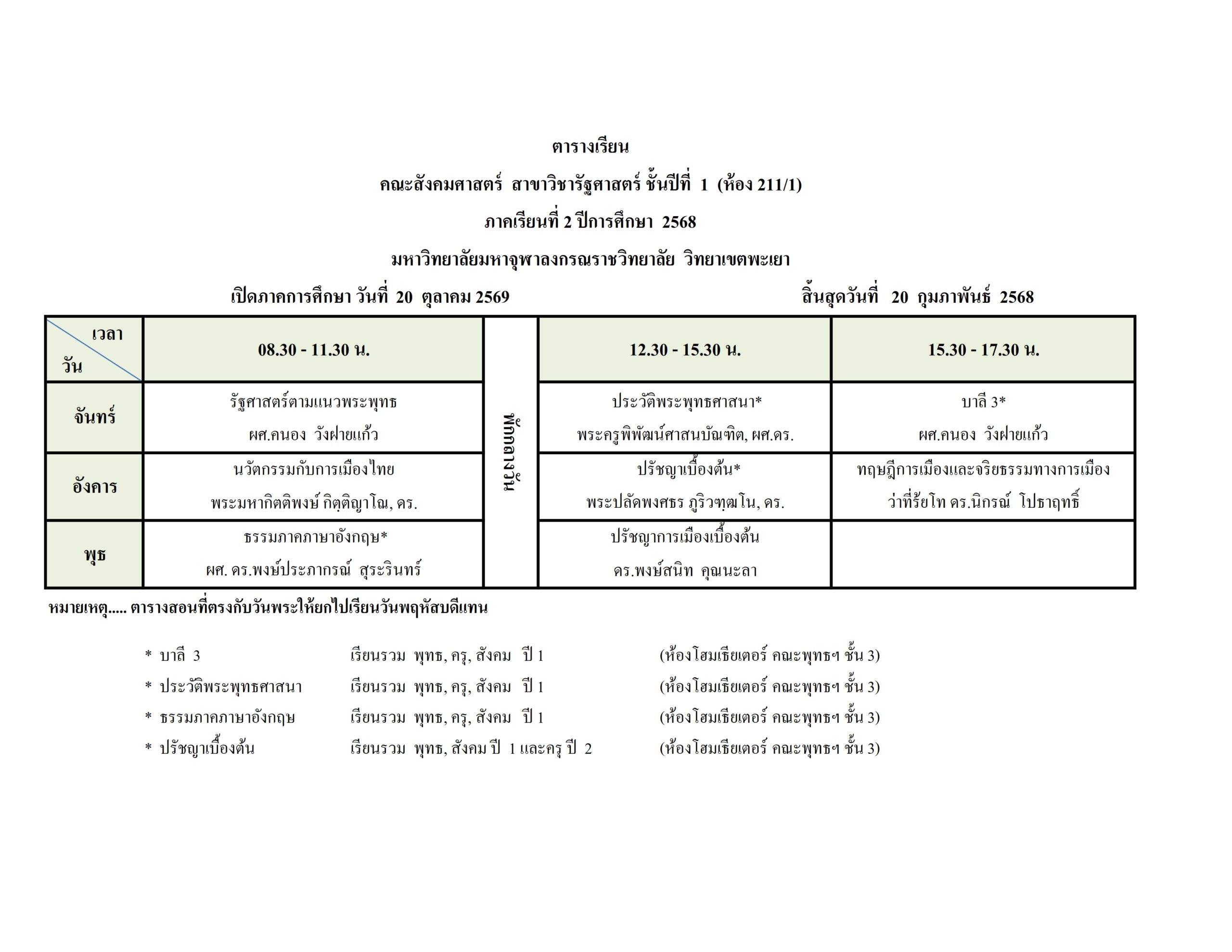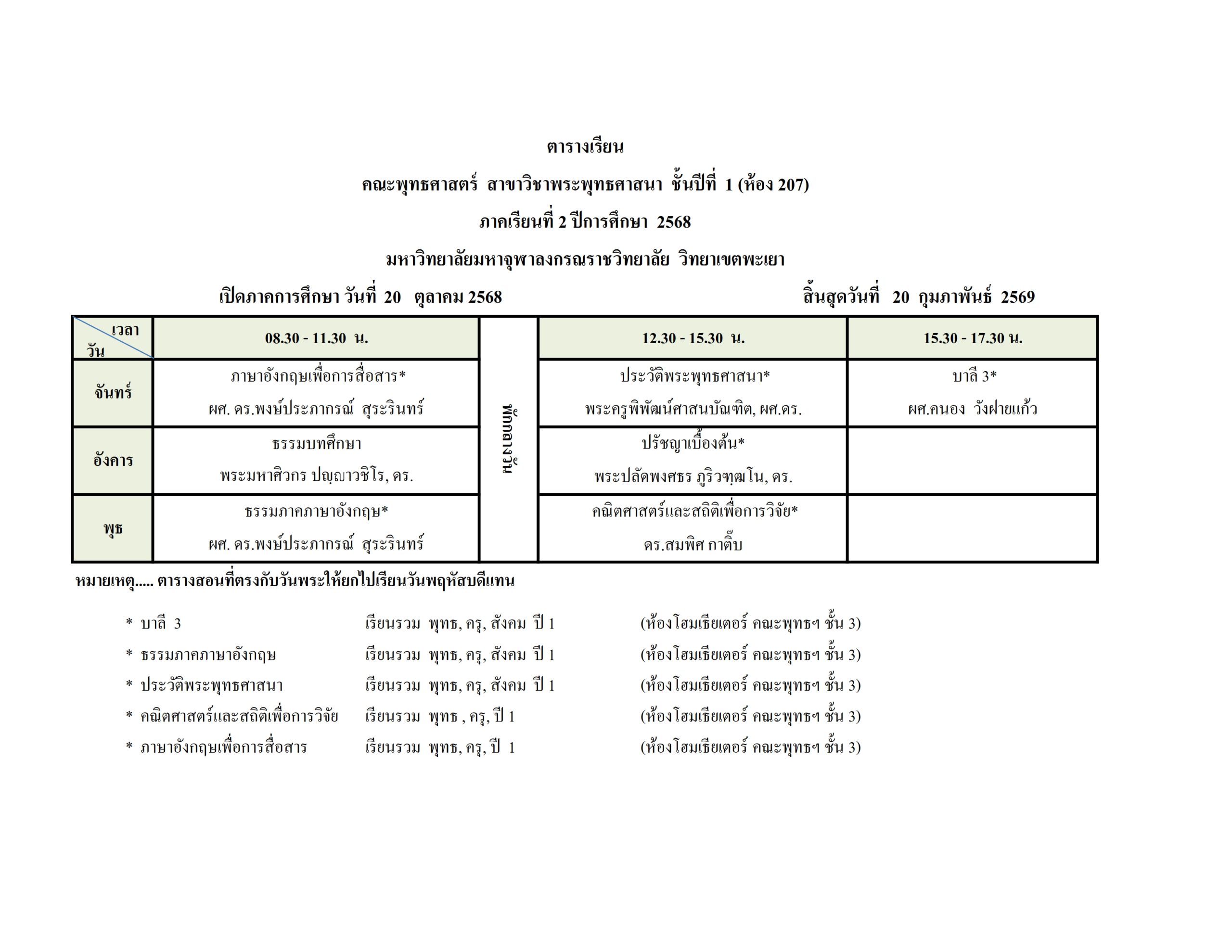 ปฏิทิน/ตารางเรียน ภาคเรียนที่ 1